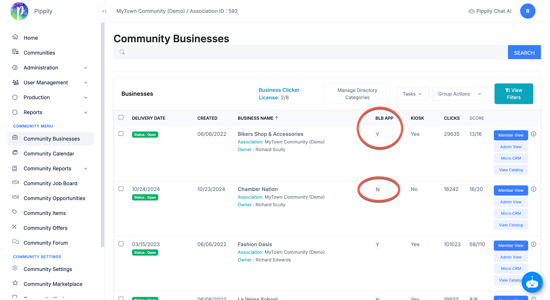 Look up the member business you would like to assign a license to by simply changing the "N" to a "Y" in the column called BLB APP (or BC APP Once We Change It).
